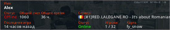 Играет на Counter Strike 1.6 сервере. Страна: РумынияПервый раз замечен 05:33 07.05.2022