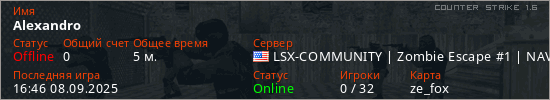 Играет на Counter Strike 1.6 сервере. Страна: СШАПервый раз замечен 16:07 08.09.2025