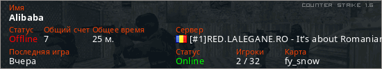 Играет на Counter Strike 1.6 сервере. Страна: РумынияПервый раз замечен 19:52 16.12.2023