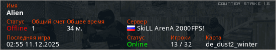 Играет на Counter Strike 1.6 сервере. Страна: РоссияПервый раз замечен 15:06 20.04.2023