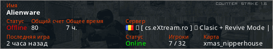 Играет на Counter Strike 1.6 сервере. Страна: РумынияПервый раз замечен 07:50 19.01.2025