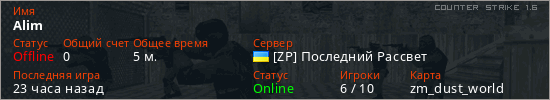 Играет на Counter Strike 1.6 сервере. Страна: УкраинаПервый раз замечен 10:59 09.03.2026