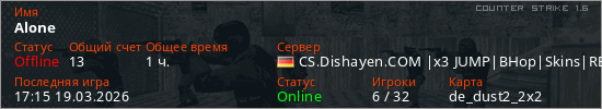 Играет на Counter Strike 1.6 сервере. Страна: ГерманияПервый раз замечен 22:24 15.03.2026