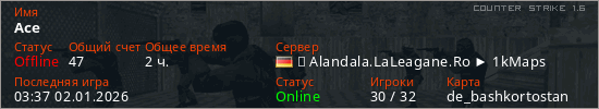 Играет на Counter Strike 1.6 сервере. Страна: ГерманияПервый раз замечен 13:58 27.05.2024