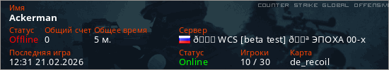 Играет на Counter Strike Global Offensive сервере. Страна: РоссияПервый раз замечен 12:25 21.02.2026