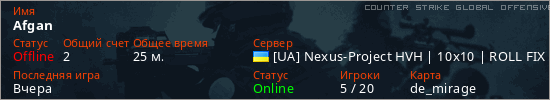 Играет на Counter Strike Global Offensive сервере. Страна: УкраинаПервый раз замечен 18:22 16.02.2026