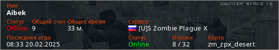 Играет на Counter Strike 1.6 сервере. Страна: РоссияПервый раз замечен 01:17 28.11.2022