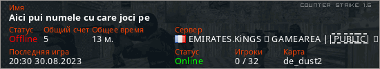 Aici pui numele cu care joci pe