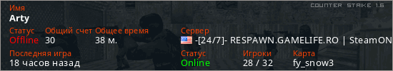 Играет на Counter Strike 1.6 сервере. Страна: СШАПервый раз замечен 21:37 04.03.2025