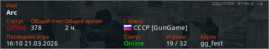 Играет на Counter Strike 1.6 сервере. Страна: РоссияПервый раз замечен 18:46 11.03.2026