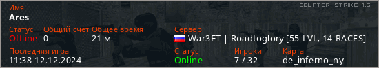 Играет на Counter Strike 1.6 сервере. Страна: РоссияПервый раз замечен 09:38 26.10.2024