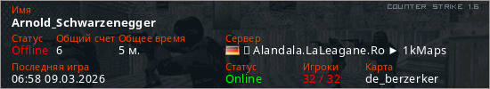 Играет на Counter Strike 1.6 сервере. Страна: ГерманияПервый раз замечен 06:54 09.03.2026