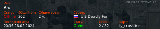 Последний раз был в сети 20:36 28.02.2024 Игрок с таким ником замечен на 29 серверах
