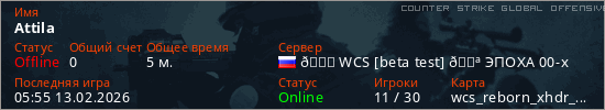 Играет на Counter Strike Global Offensive сервере. Страна: РоссияПервый раз замечен 05:48 13.02.2026