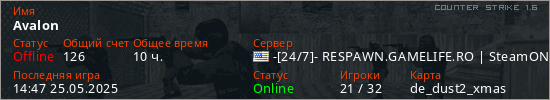 Играет на Counter Strike 1.6 сервере. Страна: СШАПервый раз замечен 16:33 15.02.2025