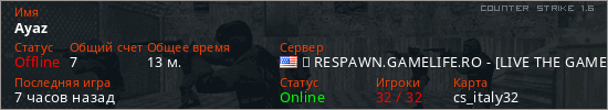 Играет на Counter Strike 1.6 сервере. Страна: СШАПервый раз замечен 19:32 04.03.2026