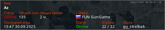 Играет на Counter Strike 1.6 сервере. Страна: РоссияПервый раз замечен 13:50 15.07.2025