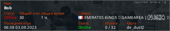 Последний раз был в сети 06:38 03.09.2023 Игрок с таким ником замечен на 48 серверах