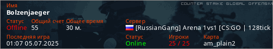 Играет на Counter Strike Global Offensive сервере. Страна: РоссияПервый раз замечен 18:24 11.04.2025