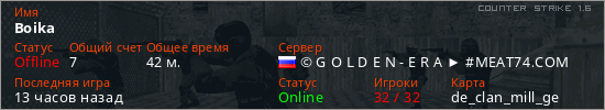 Играет на Counter Strike 1.6 сервере. Страна: РоссияПервый раз замечен 21:27 09.02.2026