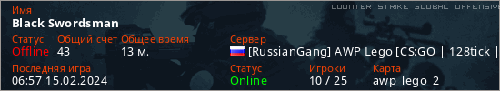 Играет на Counter Strike Global Offensive сервере. Страна: РоссияПервый раз замечен 14:42 12.02.2024