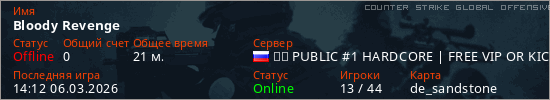 Играет на Counter Strike Global Offensive сервере. Страна: РоссияПервый раз замечен 21:52 22.01.2025