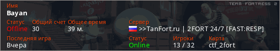 Играет на Team Fortress 2 сервере. Страна: РоссияПервый раз замечен 17:40 13.04.2026