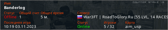 Играет на Counter Strike 1.6 сервере. Страна: РоссияПервый раз замечен 10:15 03.11.2023