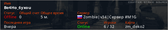 Играет на Counter Strike Source сервере. Страна: РоссияПервый раз замечен 02:13 06.12.2025