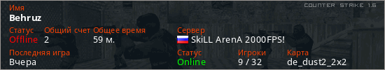 Последний раз был в сети Вчера Игрок с таким ником замечен на 19 серверах