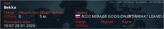 Играет на Counter Strike Global Offensive сервере. Страна: РоссияПервый раз замечен 09:59 28.01.2026