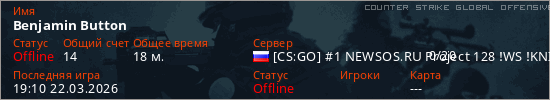 Играет на Counter Strike Global Offensive сервере. Страна: РоссияПервый раз замечен 14:58 22.03.2026