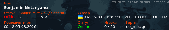 Играет на Counter Strike Global Offensive сервере. Страна: УкраинаПервый раз замечен 23:50 04.03.2026