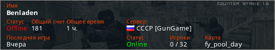 Последний раз был в сети Вчера Игрок с таким ником замечен на 15 серверах