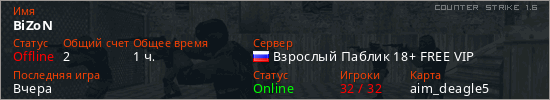 Последний раз был в сети Вчера Игрок с таким ником замечен на 7 серверах