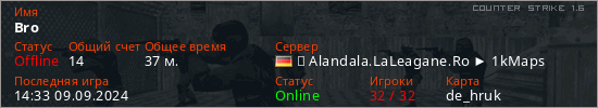 Последний раз был в сети 14:33 09.09.2024 Игрок с таким ником замечен на 31 сервере