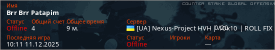 Играет на Counter Strike Global Offensive сервере. Страна: УкраинаПервый раз замечен 07:36 11.12.2025