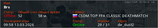 Играет на Counter Strike 1.6 сервере. Страна: РоссияПервый раз замечен 14:14 08.12.2024
