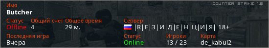 Последний раз был в сети Вчера Игрок с таким ником замечен на 28 серверах