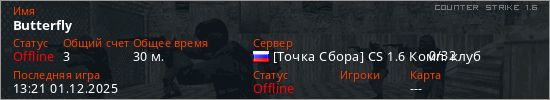 Играет на Counter Strike 1.6 сервере. Страна: РоссияПервый раз замечен 23:57 25.11.2025