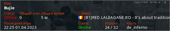 Играет на Counter Strike 1.6 сервере. Страна: РумынияПервый раз замечен 22:23 01.04.2023