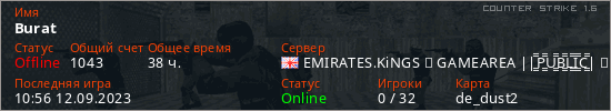 Играет на Counter Strike 1.6 сервере. Страна: ВеликобританияПервый раз замечен 17:03 10.02.2021