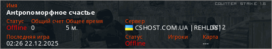 Играет на Counter Strike 1.6 сервере. Страна: УкраинаПервый раз замечен 02:14 22.12.2025