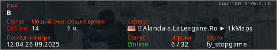 Последний раз был в сети 12:04 26.09.2025 Игрок с таким ником замечен на 38 серверах