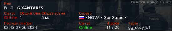 Играет на Counter Strike Source сервере. Страна: РоссияПервый раз замечен 02:30 07.06.2024