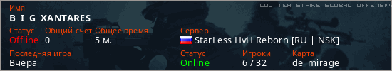 Играет на Counter Strike Global Offensive сервере. Страна: РоссияПервый раз замечен 22:10 19.12.2025