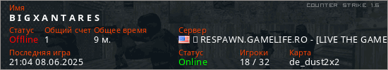 Играет на Counter Strike 1.6 сервере. Страна: СШАПервый раз замечен 20:02 29.05.2025