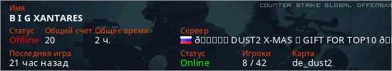 Играет на Counter Strike Global Offensive сервере. Страна: РоссияПервый раз замечен 10:14 10.01.2025