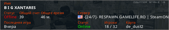 Играет на Counter Strike 1.6 сервере. Страна: СШАПервый раз замечен 16:53 09.11.2025