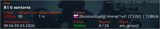 Играет на Counter Strike Global Offensive сервере. Страна: РоссияПервый раз замечен 17:51 28.02.2026